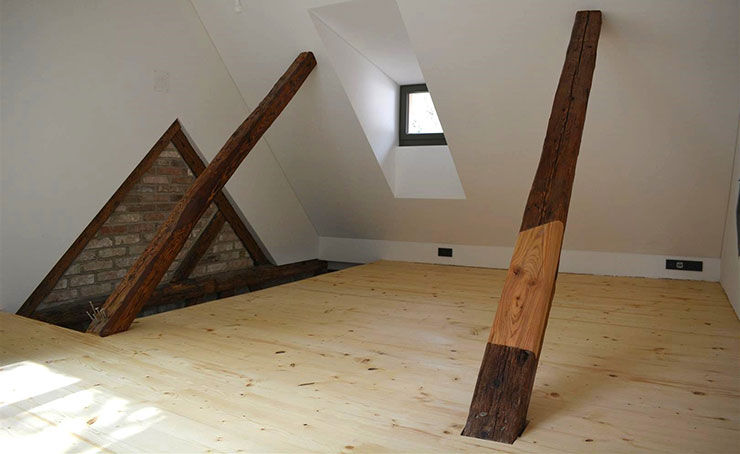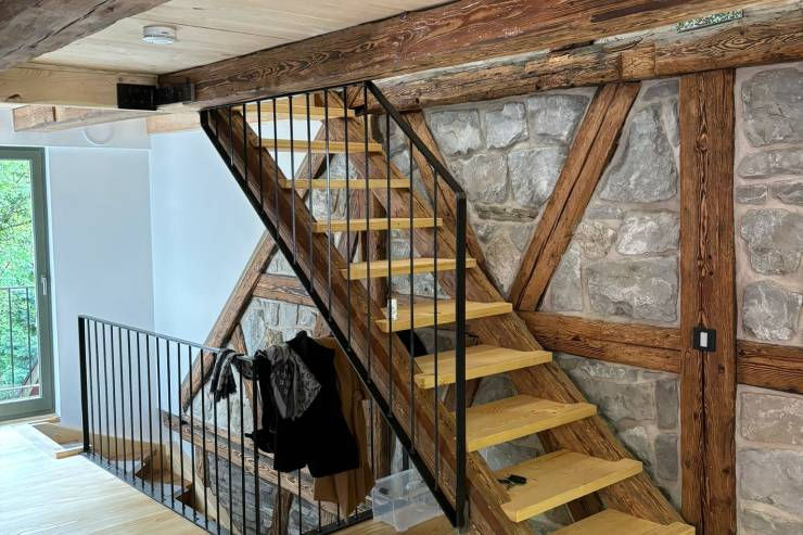 Auch bei diesem ganz besonderen Objekt folgt Holzbau Schmäh dem Firmen-Credo: So viel Originalsubstanz wie möglich bewahren und parallel modernsten Wohnkomfort schaffen. „Wir wollen eine echte Verbindung zum Historischen eingehen und dabei behutsam alt und neu verbinden“, sagt Möhrle-Schmäh. Das geht bis ins Detail, etwa bei den nachempfundenen Holzfenstern: Statt Alukanten schützen Wetterschenkel, an denen Regenwasser nach außen ablaufen kann, vor eindringender Feuchtigkeit. Möhrle-Schmäh fährt fort: „Natürlich muss man zum Beispiel ein Bad komplett dem Zeitgeist anpassen. Aber auch hier kann man Wände und Fensteröffnungen mit Respekt behandeln.“